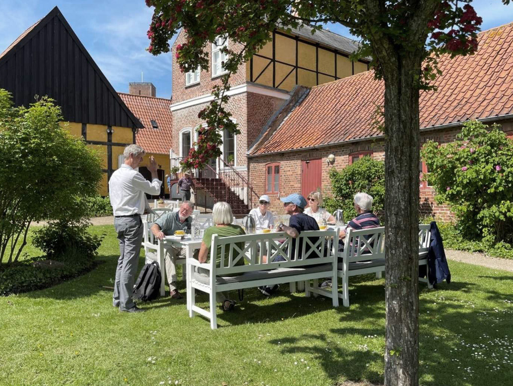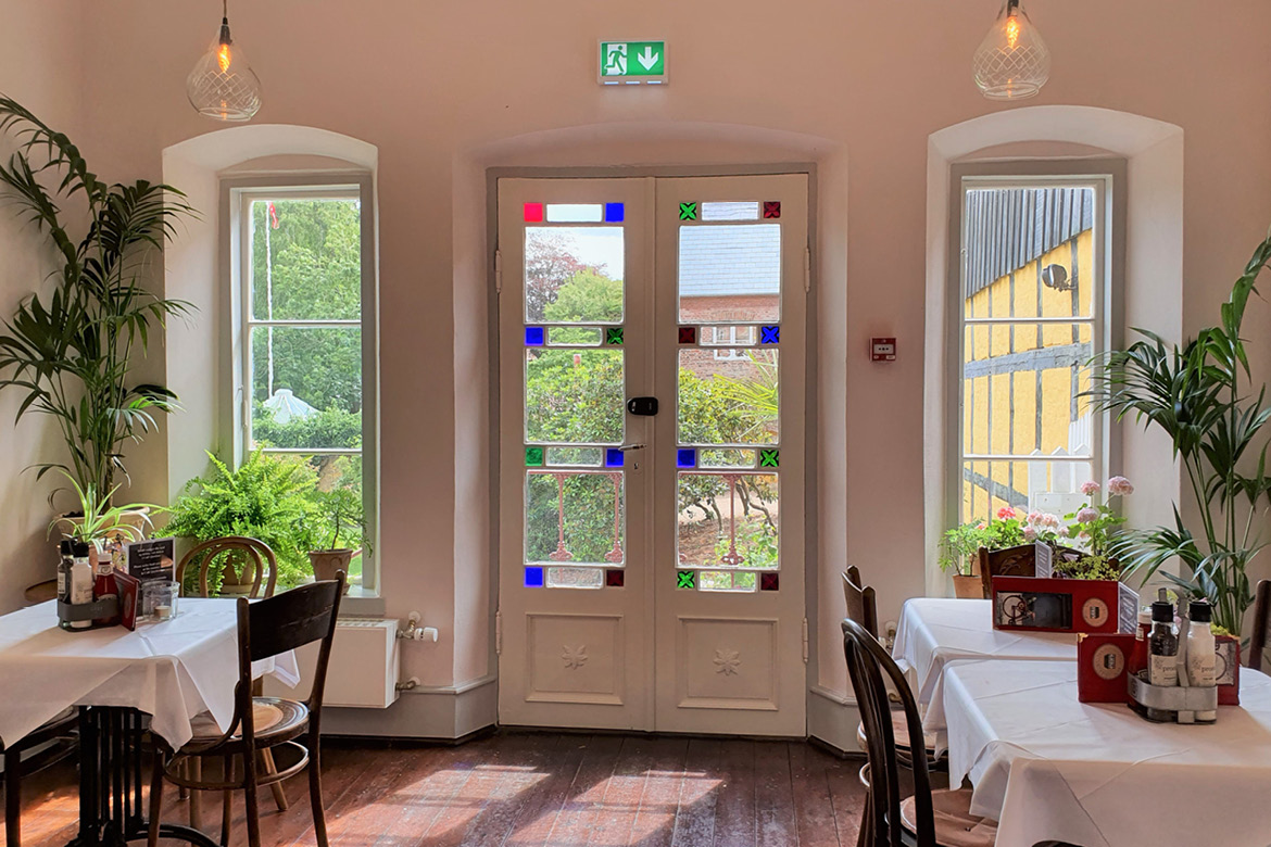 Den smukke havestue, hvor man fx kan nyde en kop kaffe, ligger ud mod gårdrummet og rosenhaven. Den blev indrettet i 1854 og er en forlængelse af sidebygningen, som er fra 1790. Havestuen er udsmykket med gipsrelieffer med motiver af Bertel Thorvaldsen