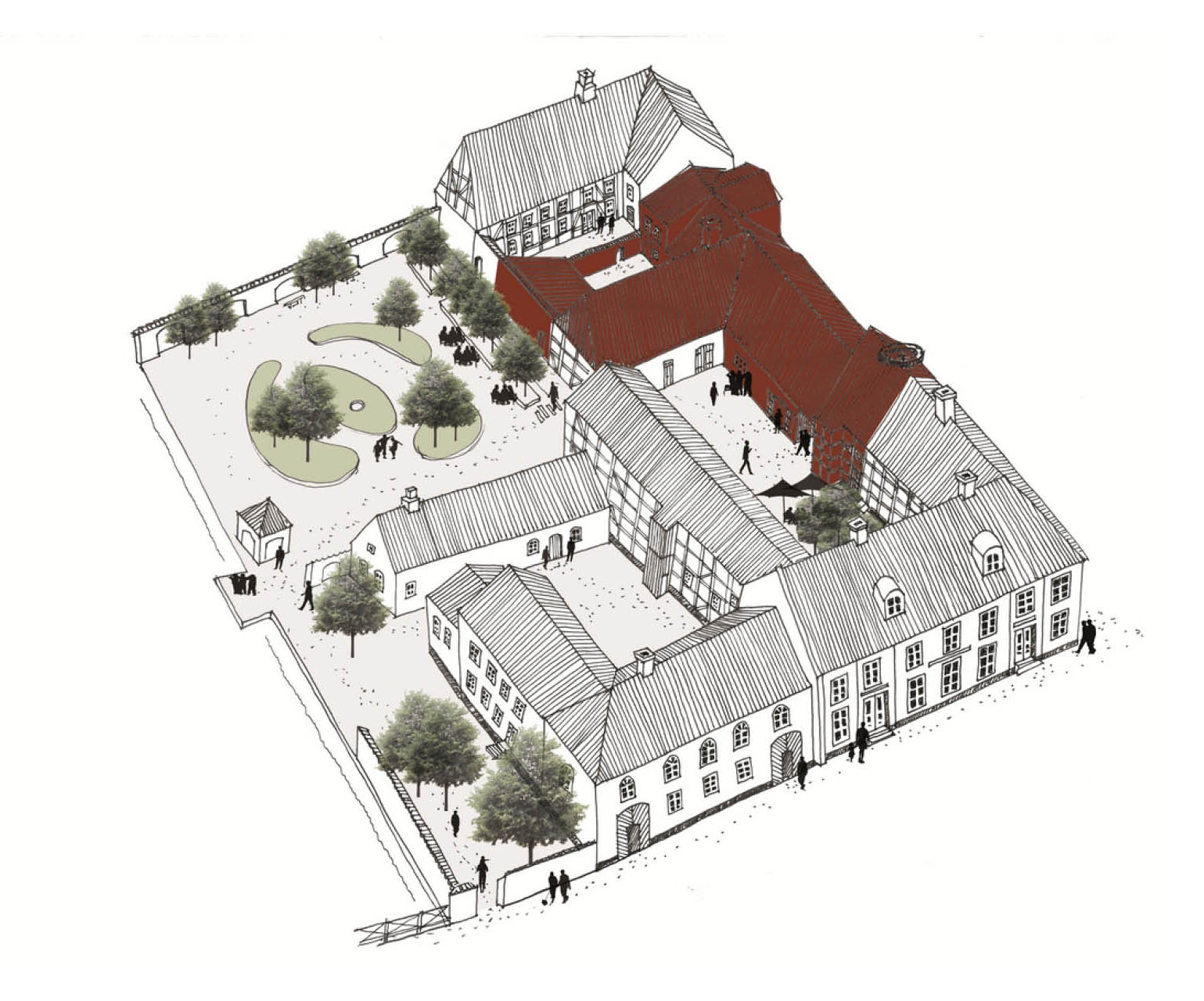Jørgen Overbys Tegnestue A/S stod for bygningsrenoveringen af Quedens Gaard karreen. Hovedentreprisen havde Knud Weiland Aps, Jejsing.